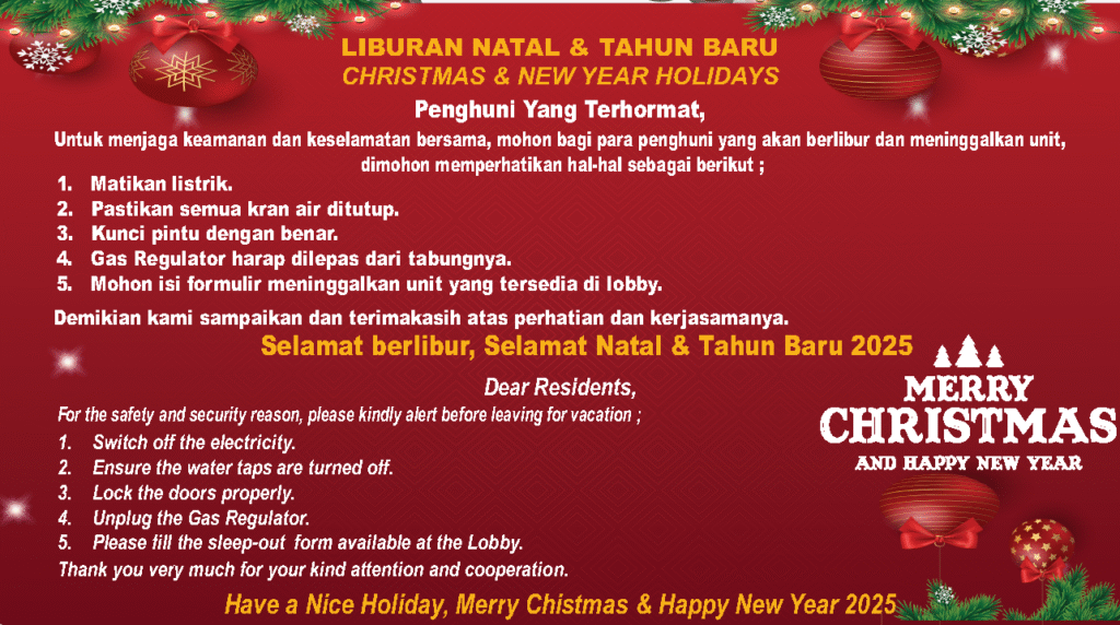 TENANT GATHERING 2025 RENOVASI LOBBY TOWER A & B TIPS SEBELUM MENINGGALKAN RUMAH SAAT MUDIK LEBARAN SELAMAT HARI NATAL & TAHUN BARU 2025 RENOVASI WATER FOUNTAIN TENANT GATHERING 2024 Instagram